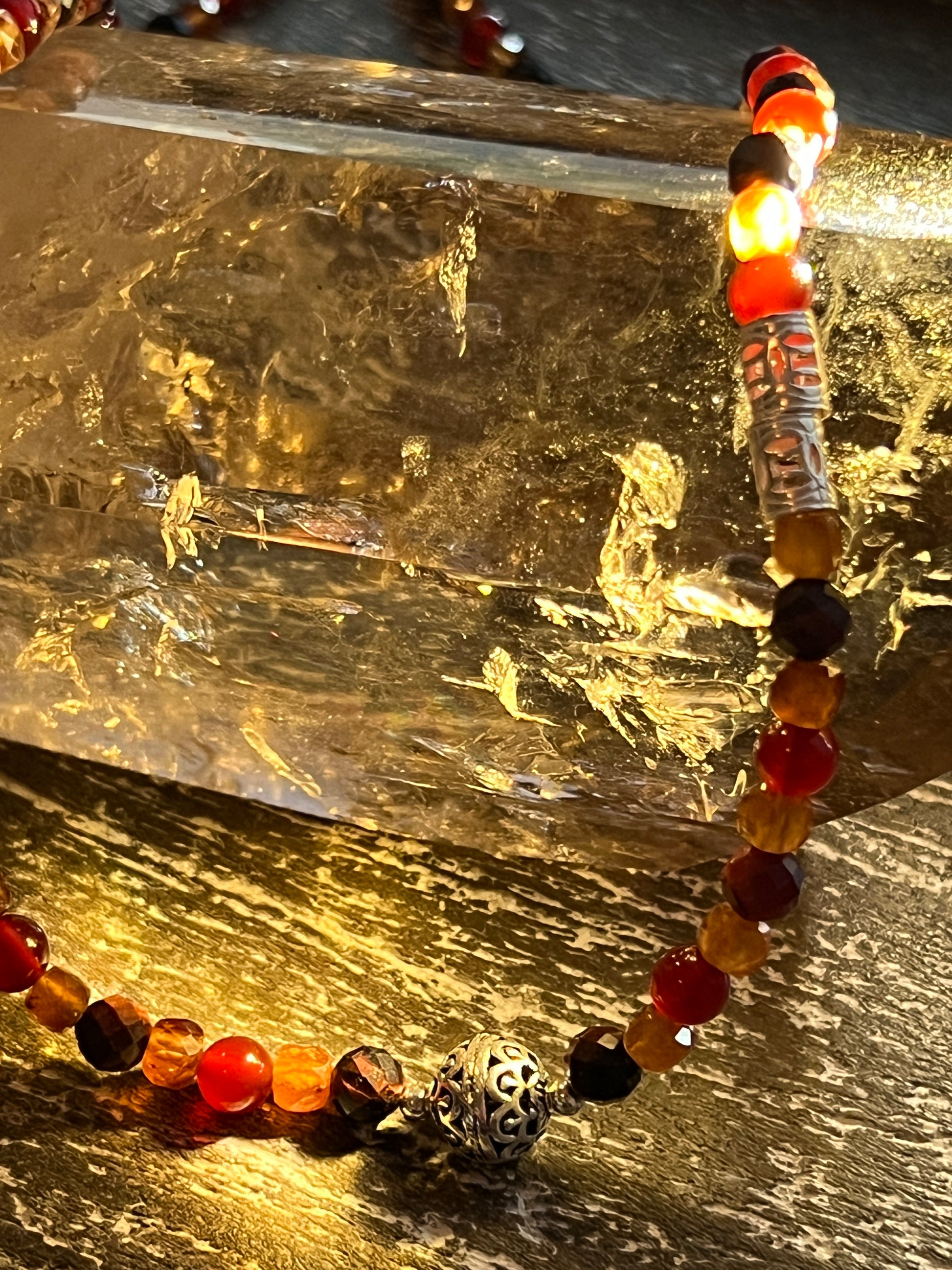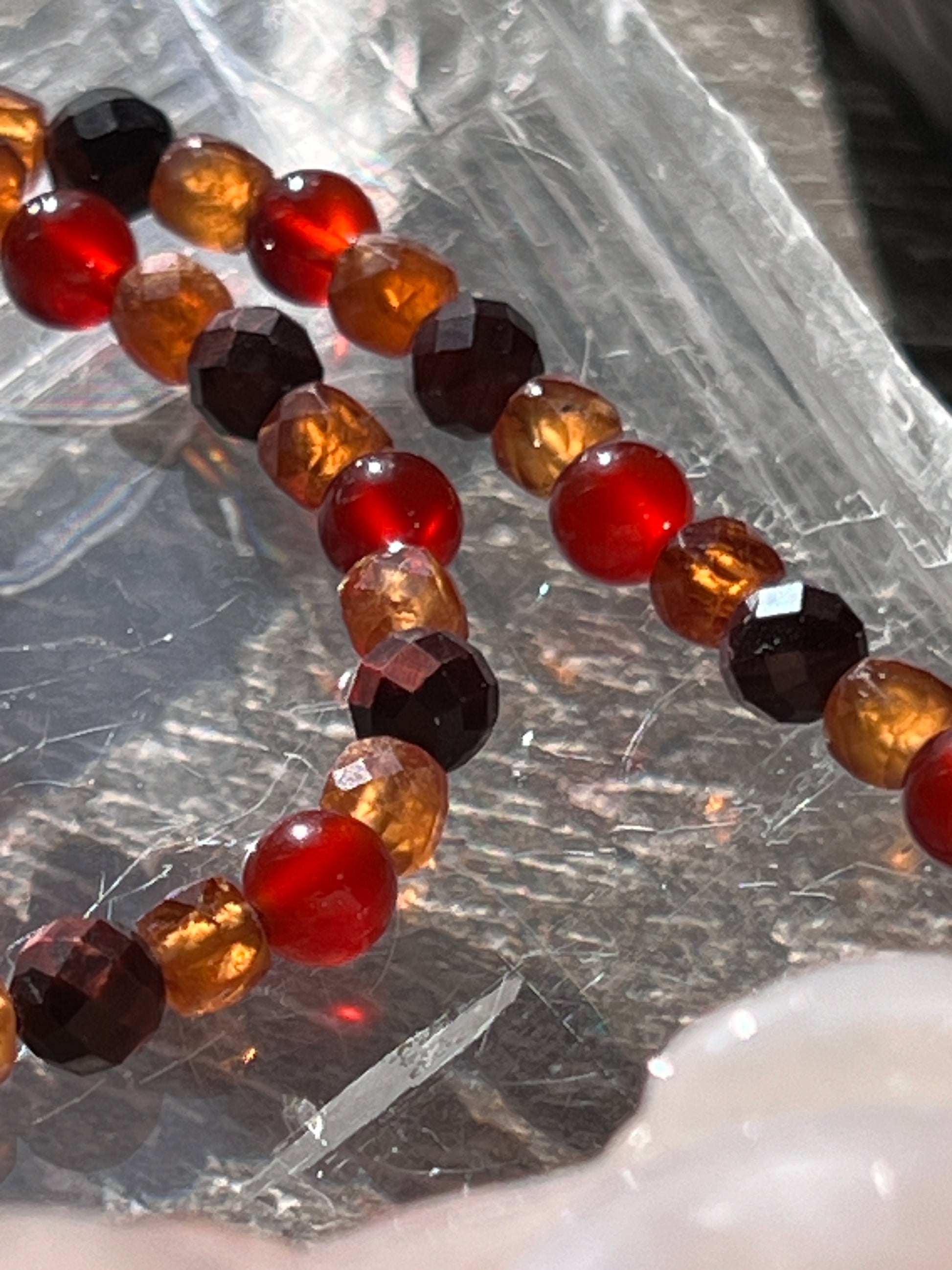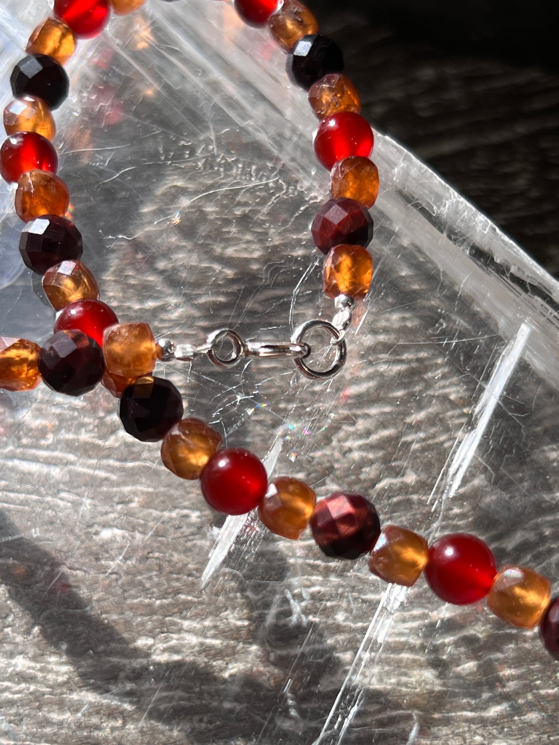 This is THE necklace for you if you have a tendancy to procrastinate, or feel overwhelmed with the things you need to get done. Red Tiger's Eye, Carnelian, and Orange Spessartiite Garnet come together with 925 Silver beads to help move your frequency to a place where you get things done! The Carnelian starts off with the energy of encouragement and motivation. Spessartite Garnet moves in with an especially high vibration and is known to be a mood lifter. Red Tiger's Eye is up to bat with more motivation, and the drive to accomplish goals. Finally, the solid 925 silver beads work with the conductivity of your skin to increase your wellbeing. When you wear this, say the name of the necklace in your mind or out loud whenever you put it on and throughout the day to start reprogramming your subconcious with this power piece. 20 inches. Check out the other pieces in our I Get Things Done line!