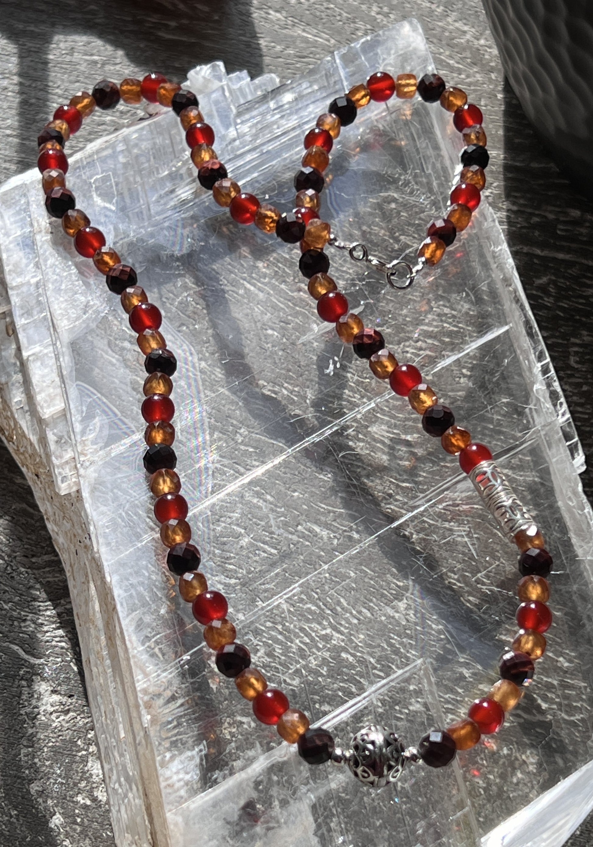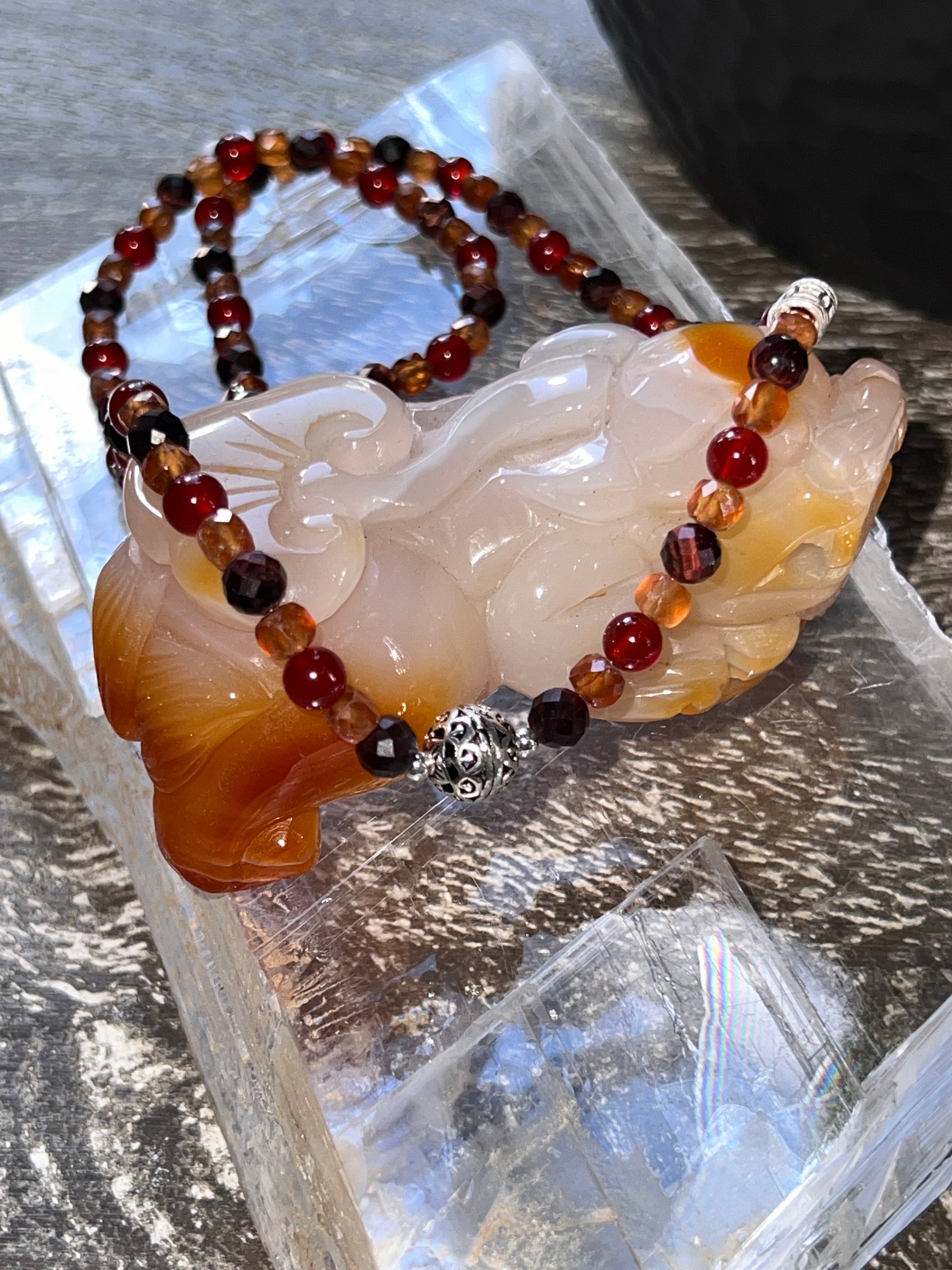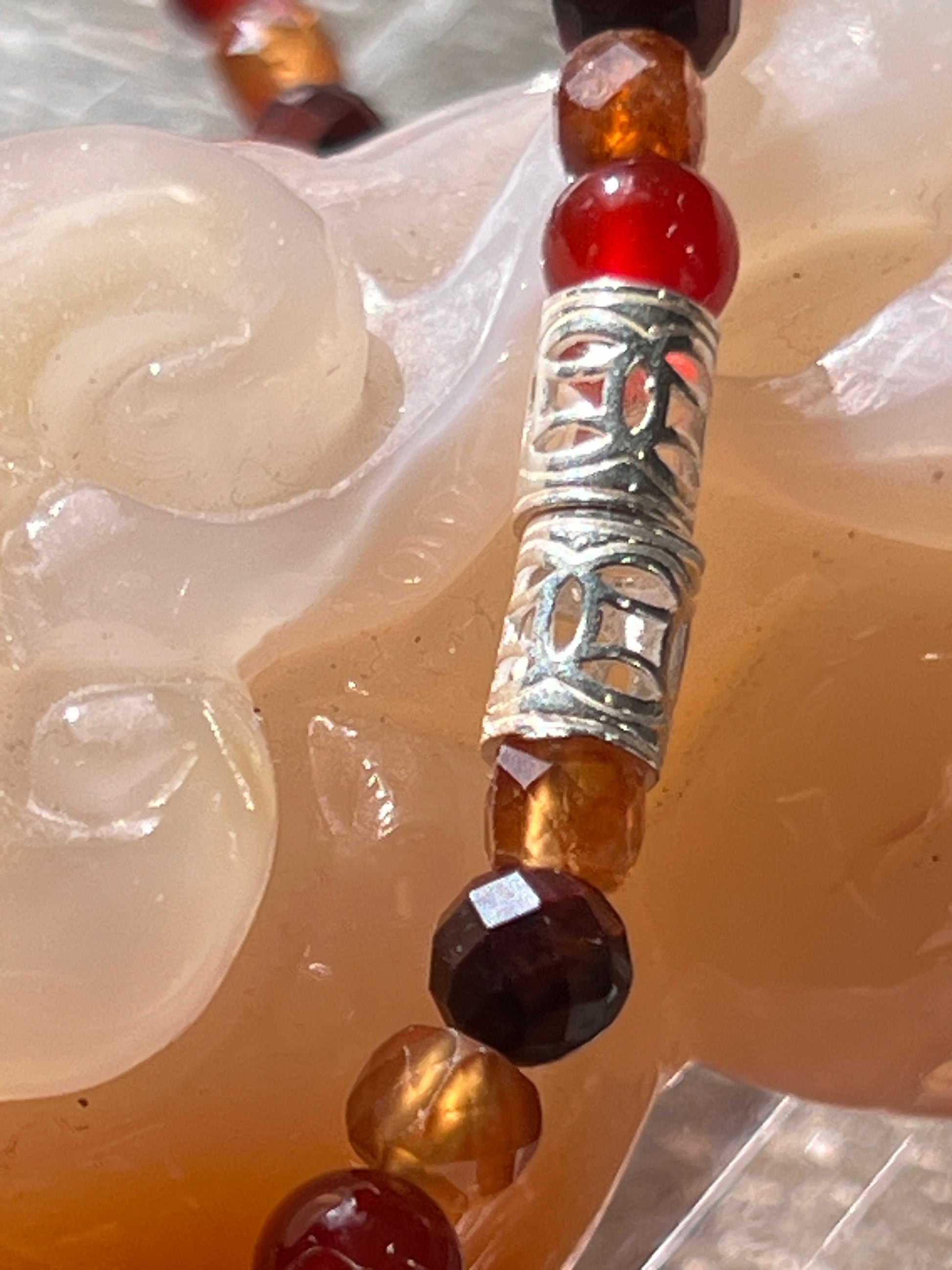 This is THE necklace for you if you have a tendancy to procrastinate, or feel overwhelmed with the things you need to get done. Red Tiger's Eye, Carnelian, and Orange Spessartiite Garnet come together with 925 Silver beads to help move your frequency to a place where you get things done! The Carnelian starts off with the energy of encouragement and motivation. Spessartite Garnet moves in with an especially high vibration and is known to be a mood lifter. Red Tiger's Eye is up to bat with more motivation, and the drive to accomplish goals. Finally, the solid 925 silver beads work with the conductivity of your skin to increase your wellbeing. When you wear this, say the name of the necklace in your mind or out loud whenever you put it on and throughout the day to start reprogramming your subconcious with this power piece. 20 inches. Check out the other pieces in our I Get Things Done line!
