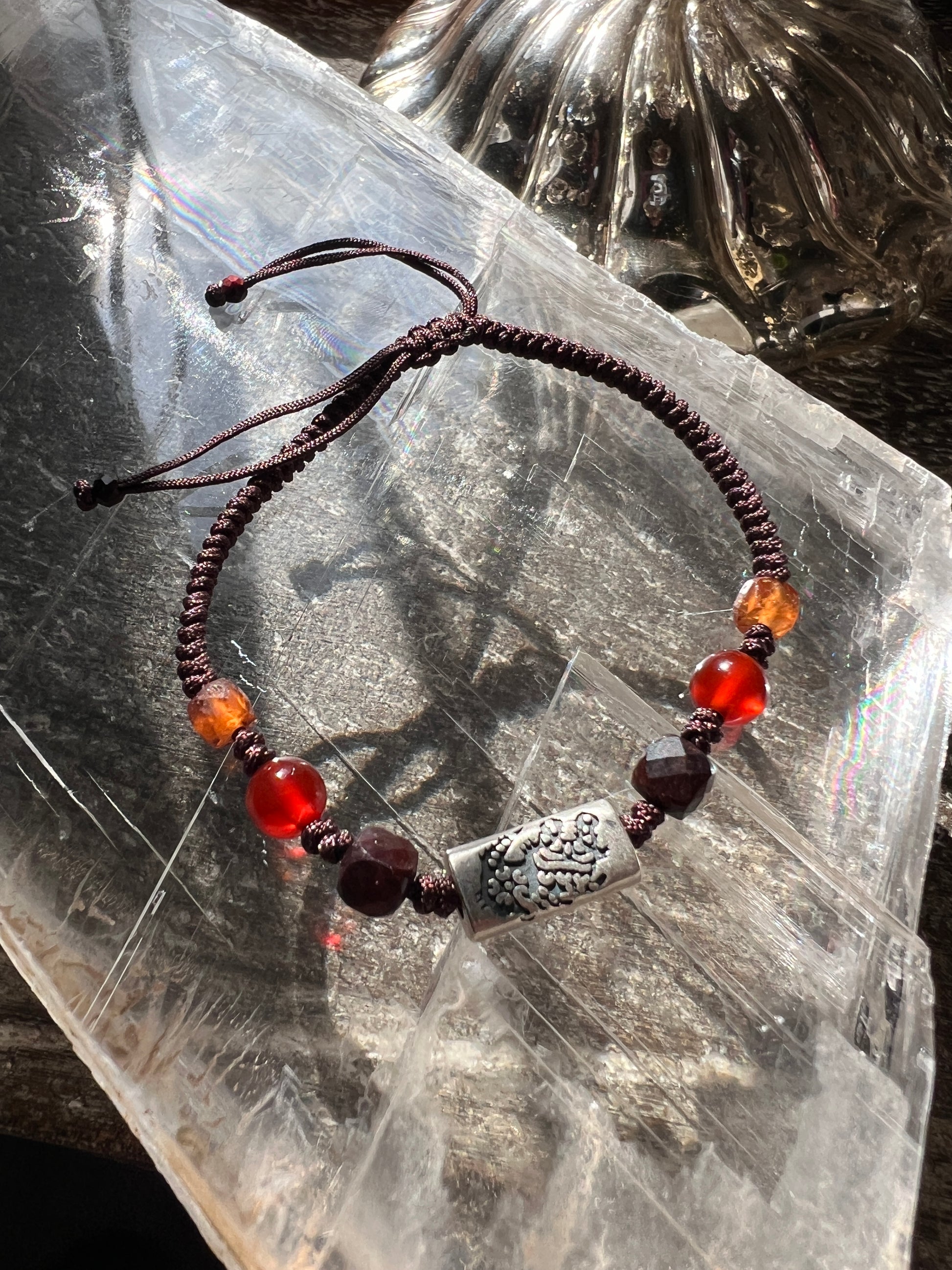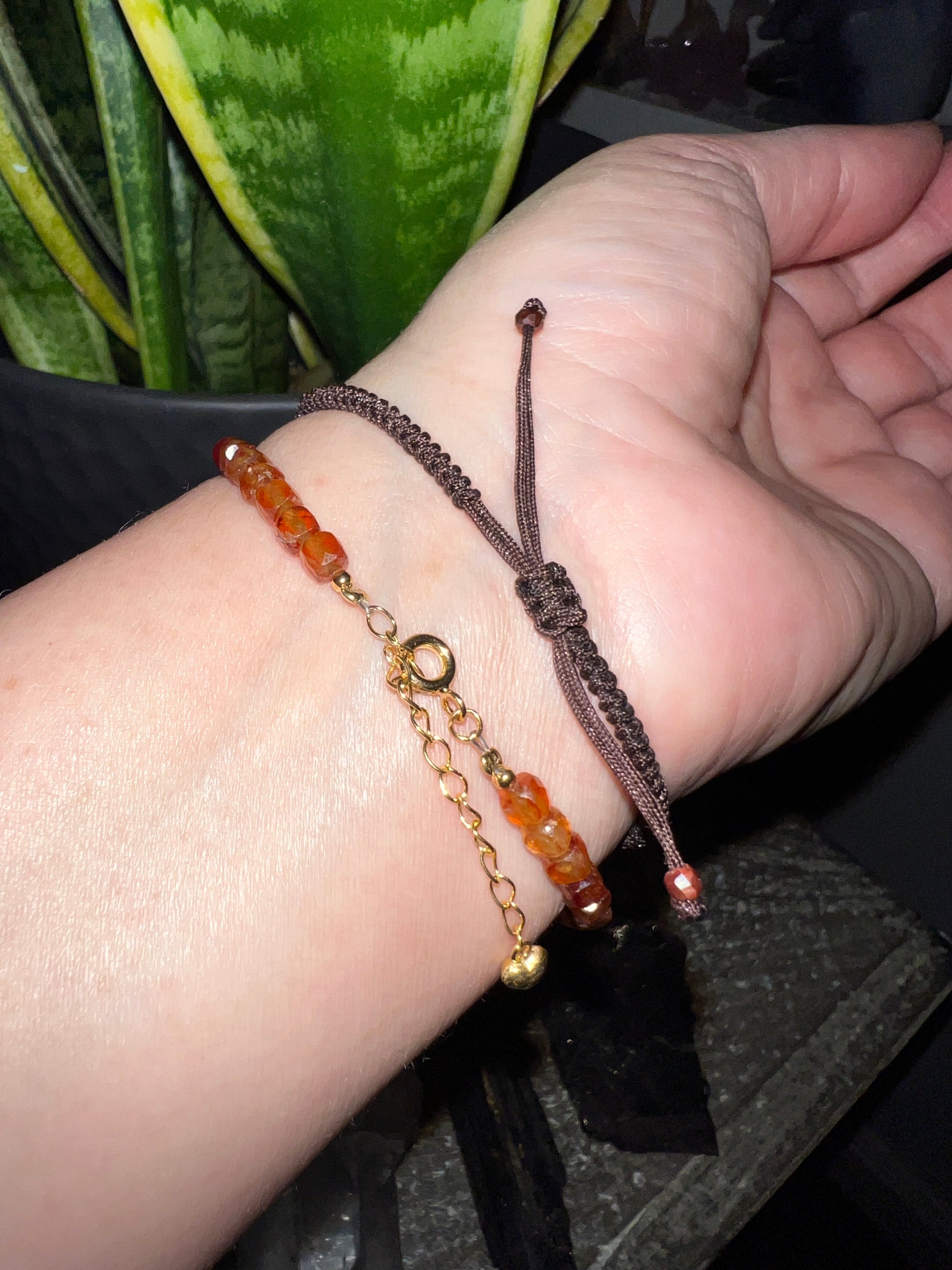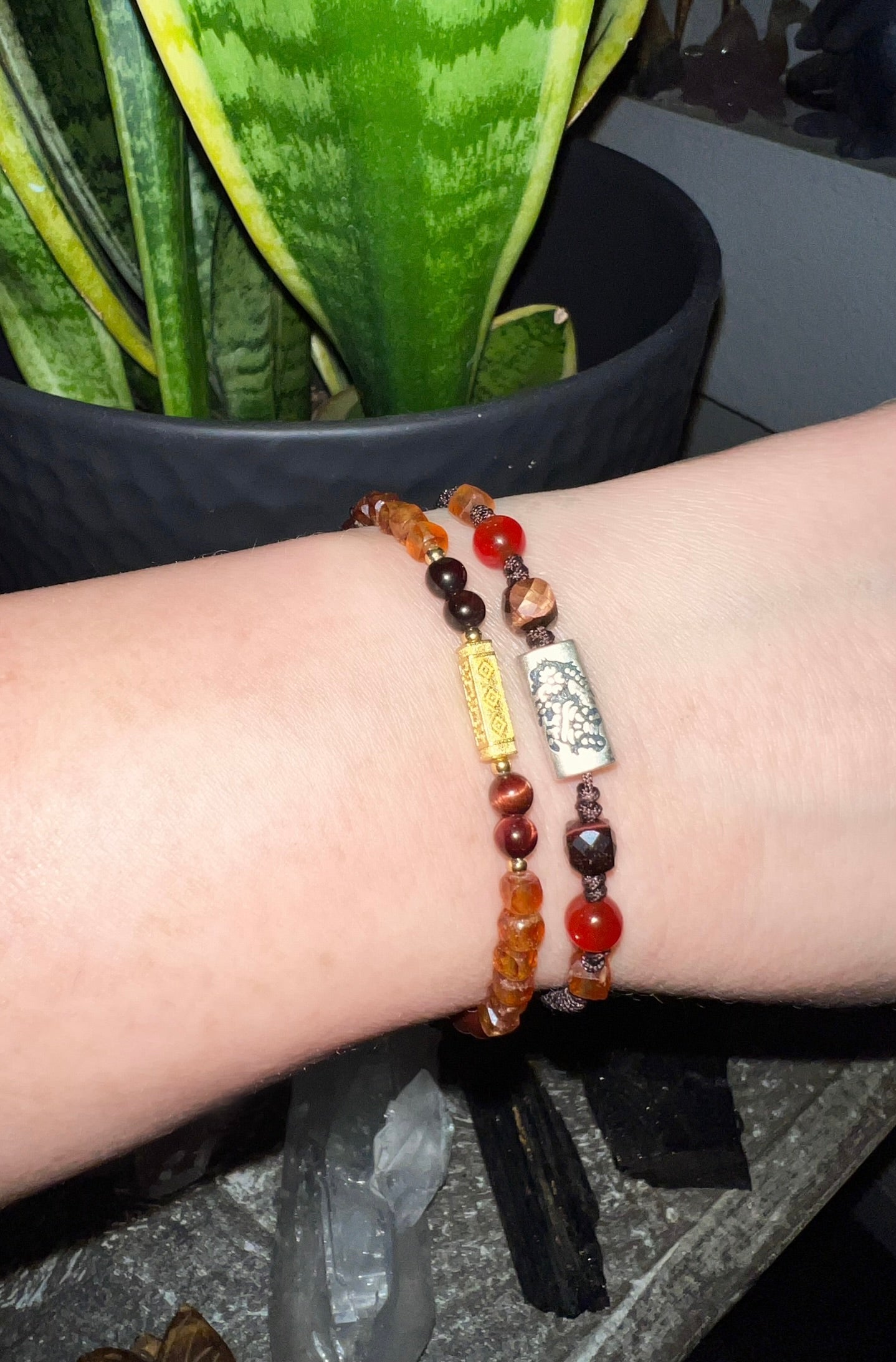 This is THE bracelet for you if you have a tendency to procrastinate, or feel overwhelmed with the things you need to get done. Red Tiger's Eye, Carnelian, and Orange Spessartite Garnet come together with a 925 Silver Tiger bead to help move your frequency to a place where you get things done! The Carnelian starts off with the energy of encouragement and motivation. Spessartite Garnet moves in with an especially high vibration and is known to be a mood lifter. Red Tiger's Eye is up to bat with more motivation, and the drive to accomplish goals. Finally, the solid 925 silver tiger bead works with the conductivity of your skin to increase your wellbeing, while the tiger imparts fierceness and a comfort with its own path. When you wear this, say the name of the bracelet in your mind or out loud whenever you put it on and throughout the day to start reprogramming your subconscious with this power piece. Fits wrists 6 - 9 inches. Check out the other pieces in our I Get Things Done line!