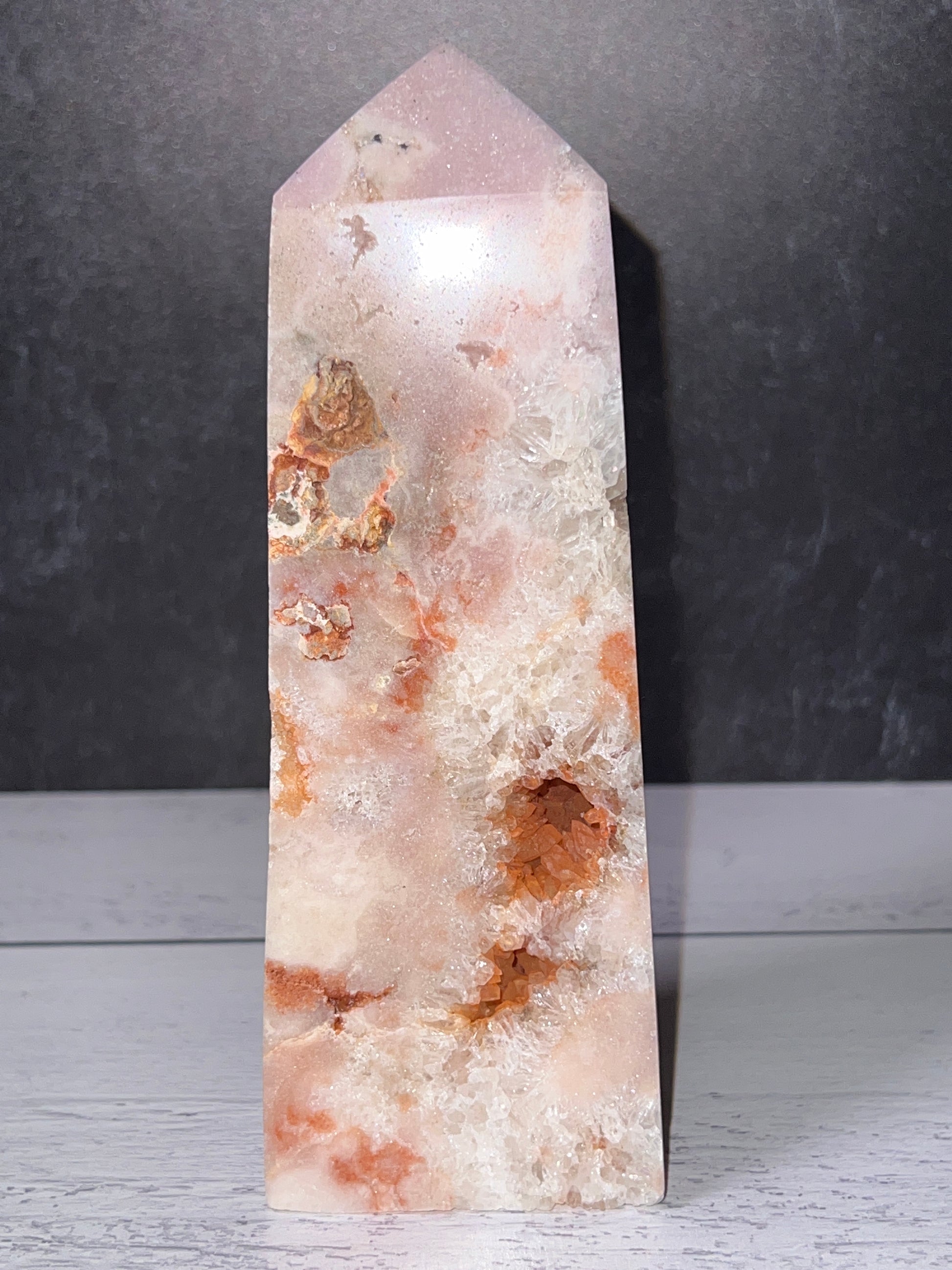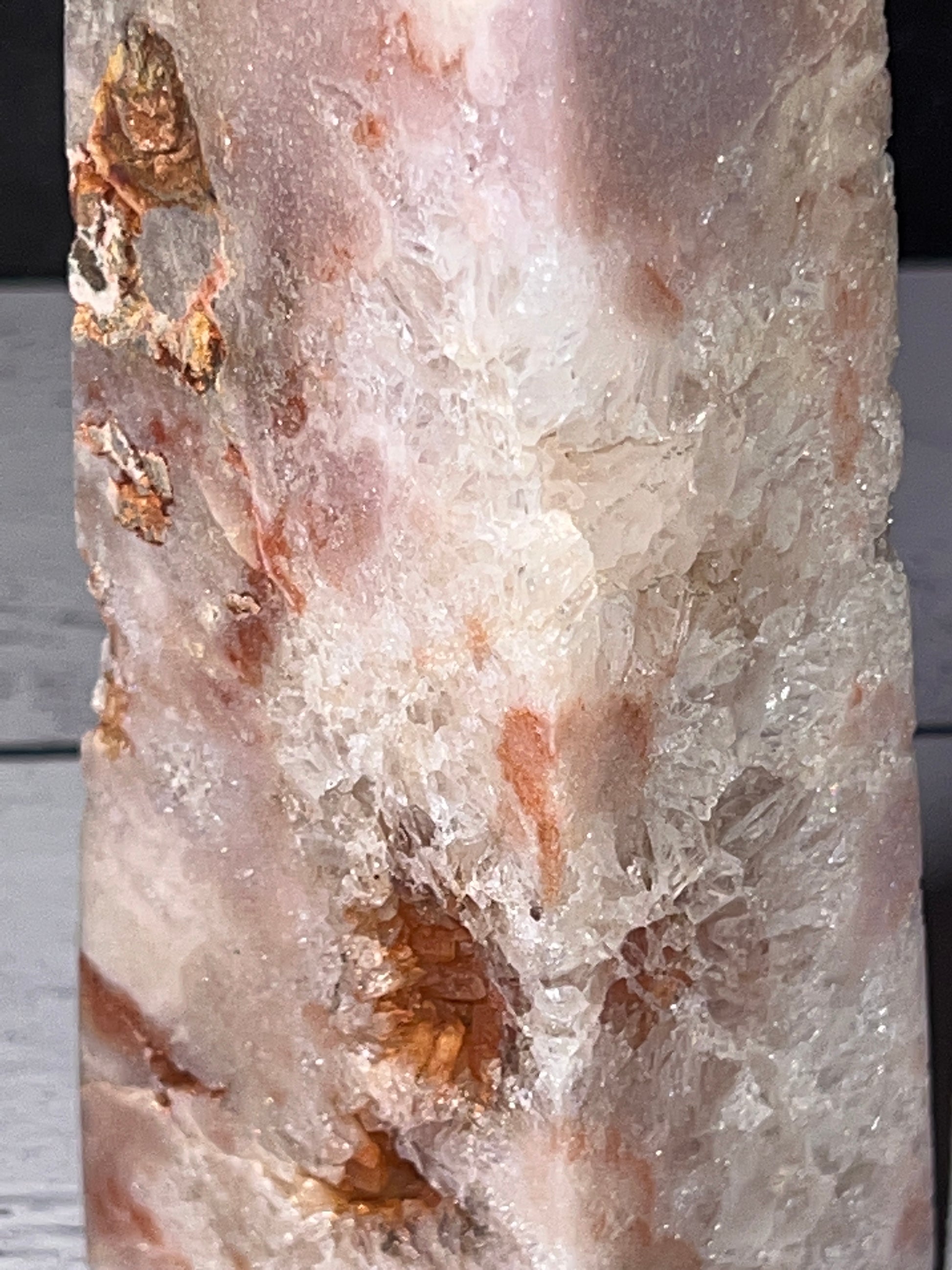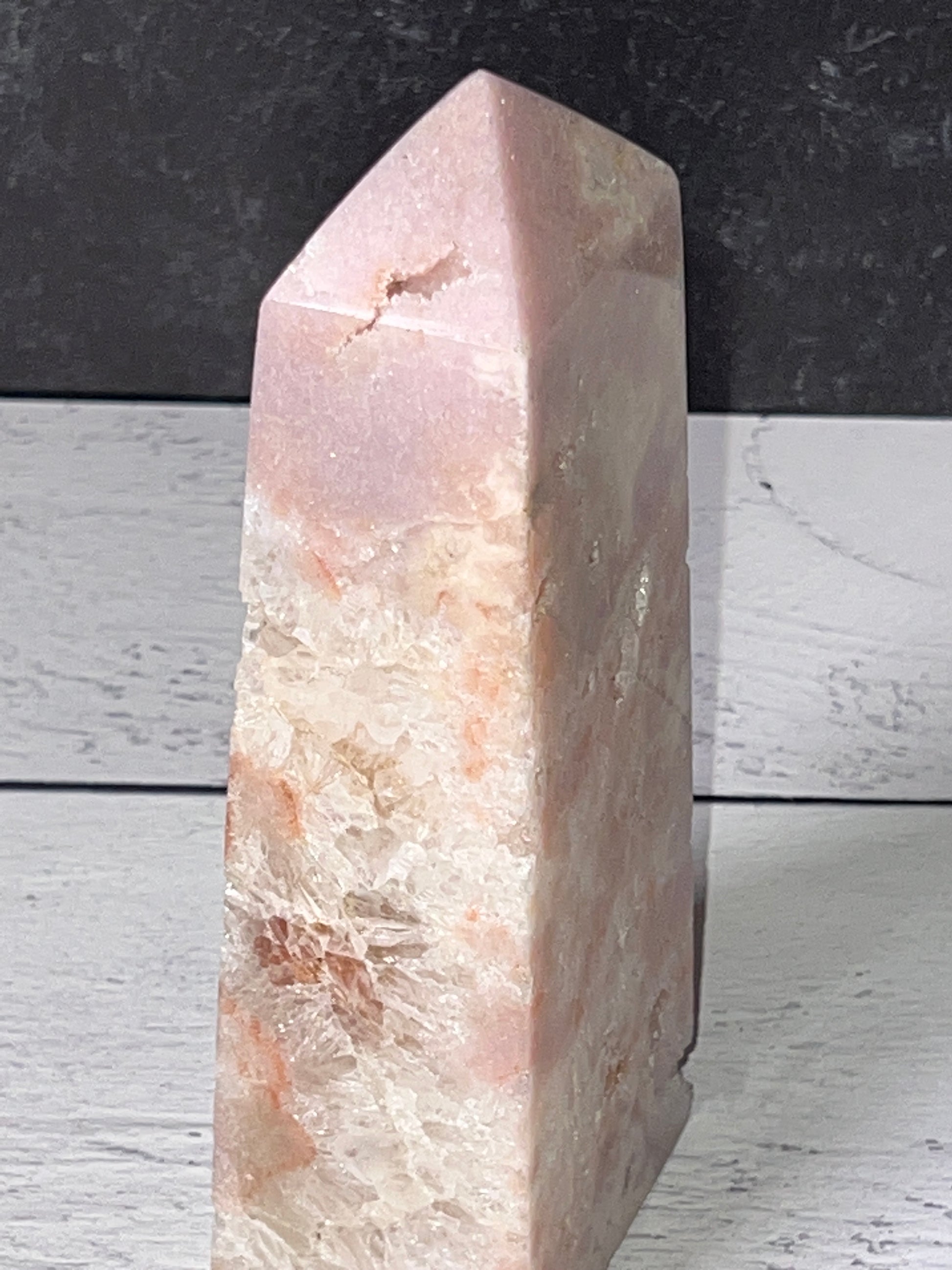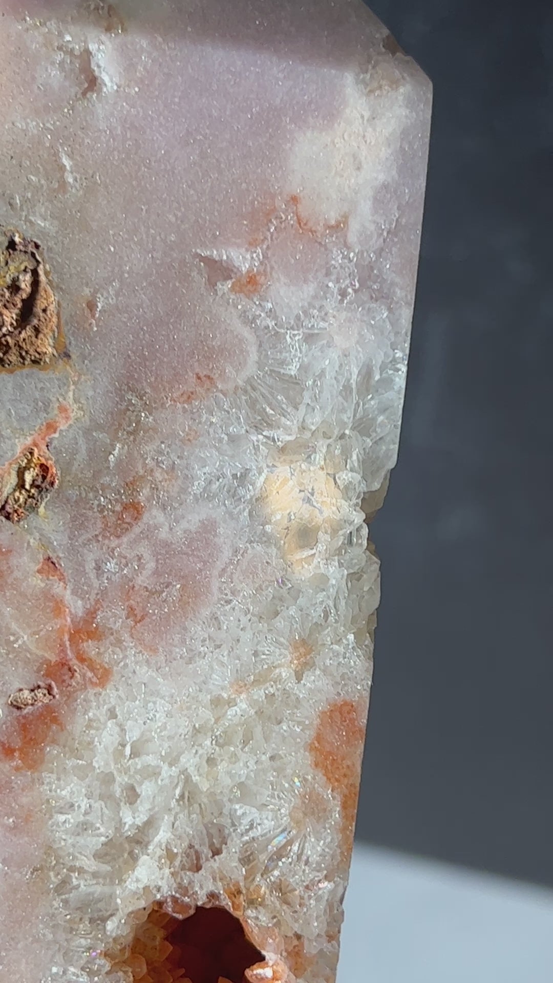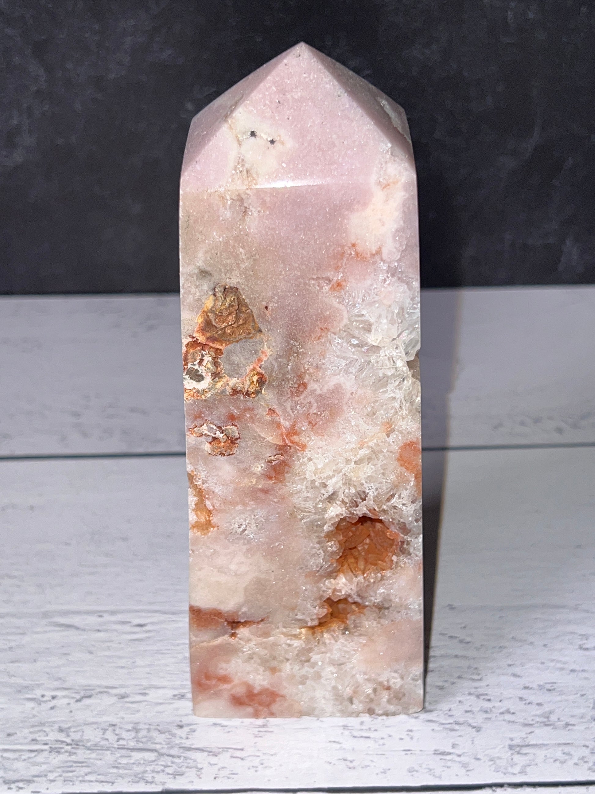 This sparkly beauty stands 6.56" inches tall. Pink Amethyst can be used similary to standard purple amethyst, for the crown chakra, for example. However this more rare version from Argentina has the added component of Hematite, and can be used for love, and working on the heart chakra.
